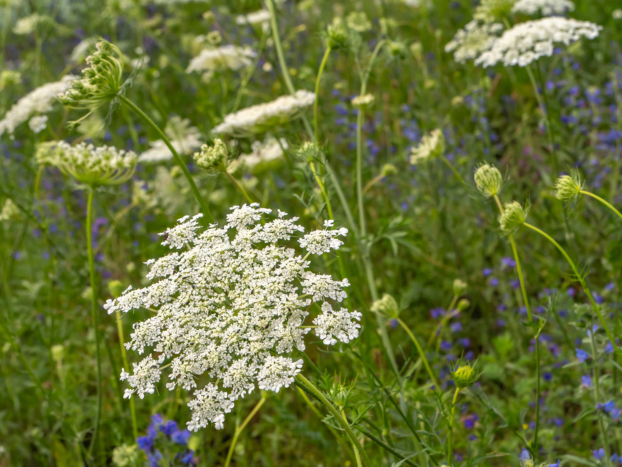 - Key notes: Easily confused with hemlock (Conium maculatum), which is toxic. Wild carrot has hairy stems and a single dark floret; hemlock has smooth, purple‑blotched stems.